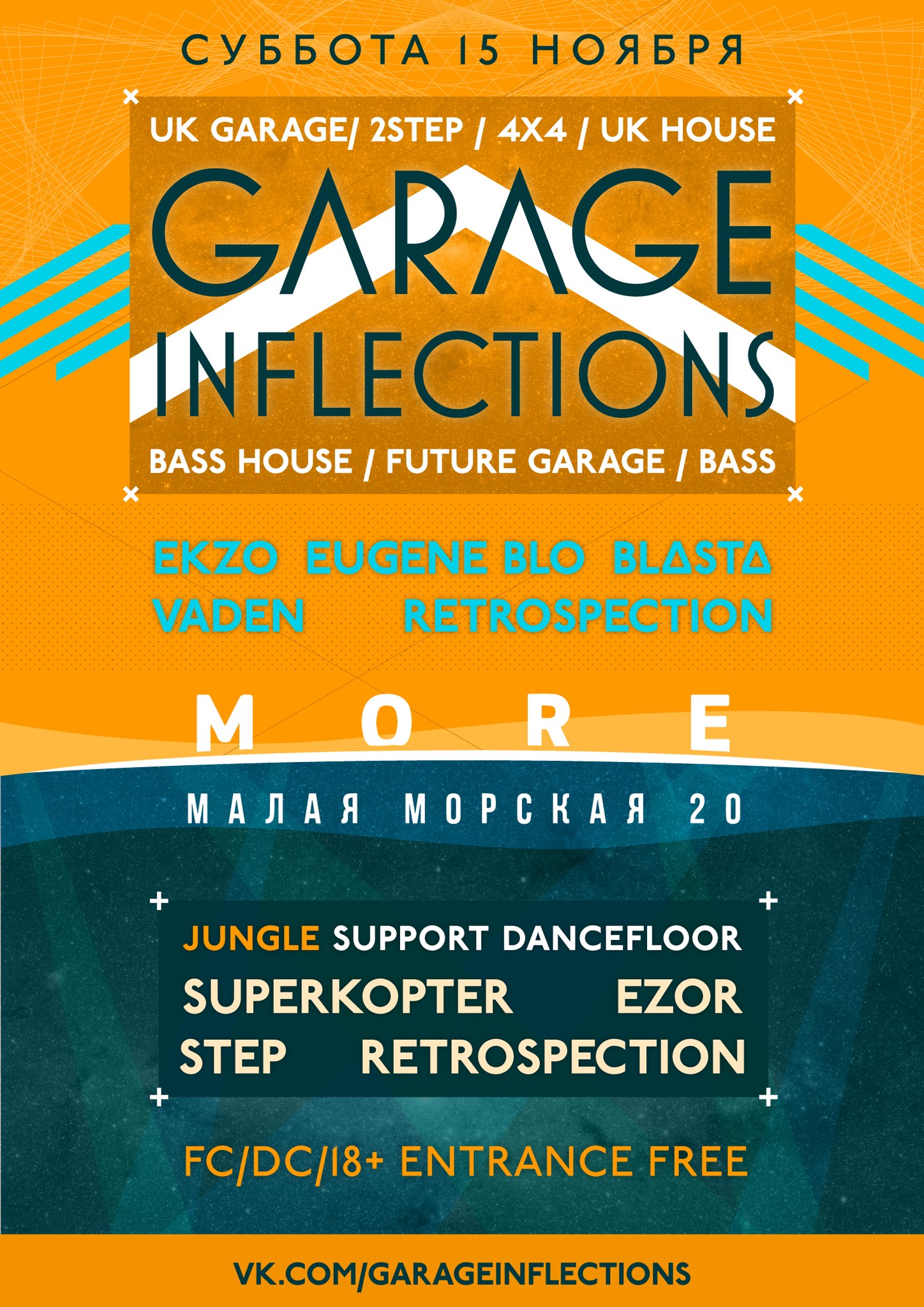 Как и всегда, вас ждут самые актуальные и наиболее танцевальные проявления Garage, на этот раз подкреплённые специальным Jungle-танцполом, который представляет стиль, сыгравший далеко не последнюю роль в развитии современной Garage и Bass музыки. Двойная энергия UK-вибраций!