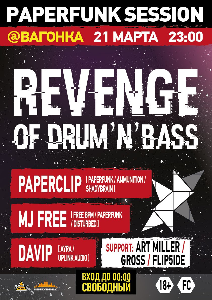 Paperfunk Session под видом маяка возмездия путешествует по городам России и вселяет пытливым умам надежду на темное будущее андерграунд движения Drum and Bass. Несоизмеримая, по адекватным меркам, мощь идеи и звука всегда оставляет в своей тарелке тех, кто пришел за не сравнимой ни с чем атмосферой техстепа.